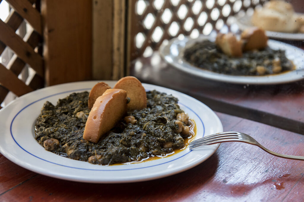 The classic espinacas con garbanzos (spinach with chickpeas) and a glass of local sherry.