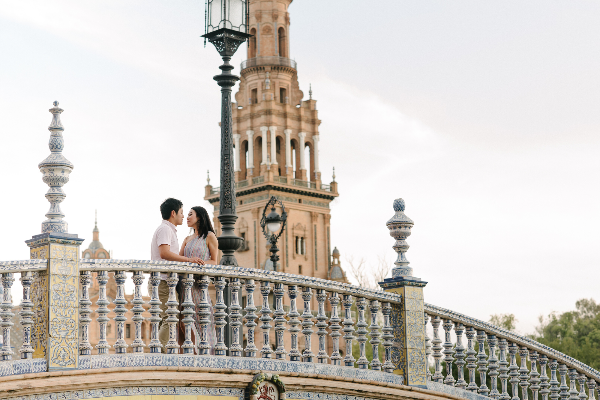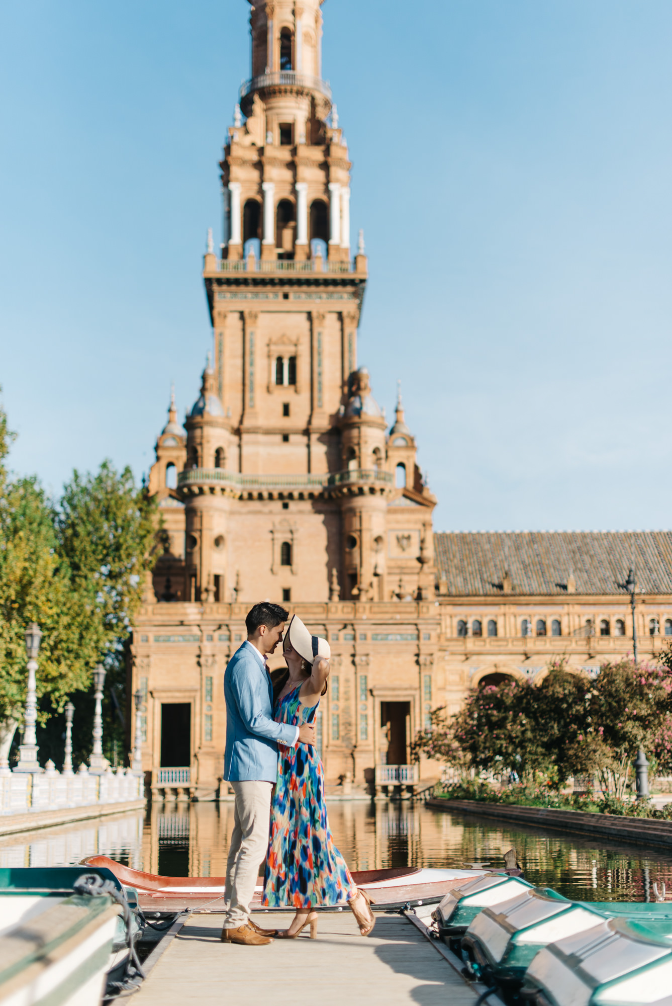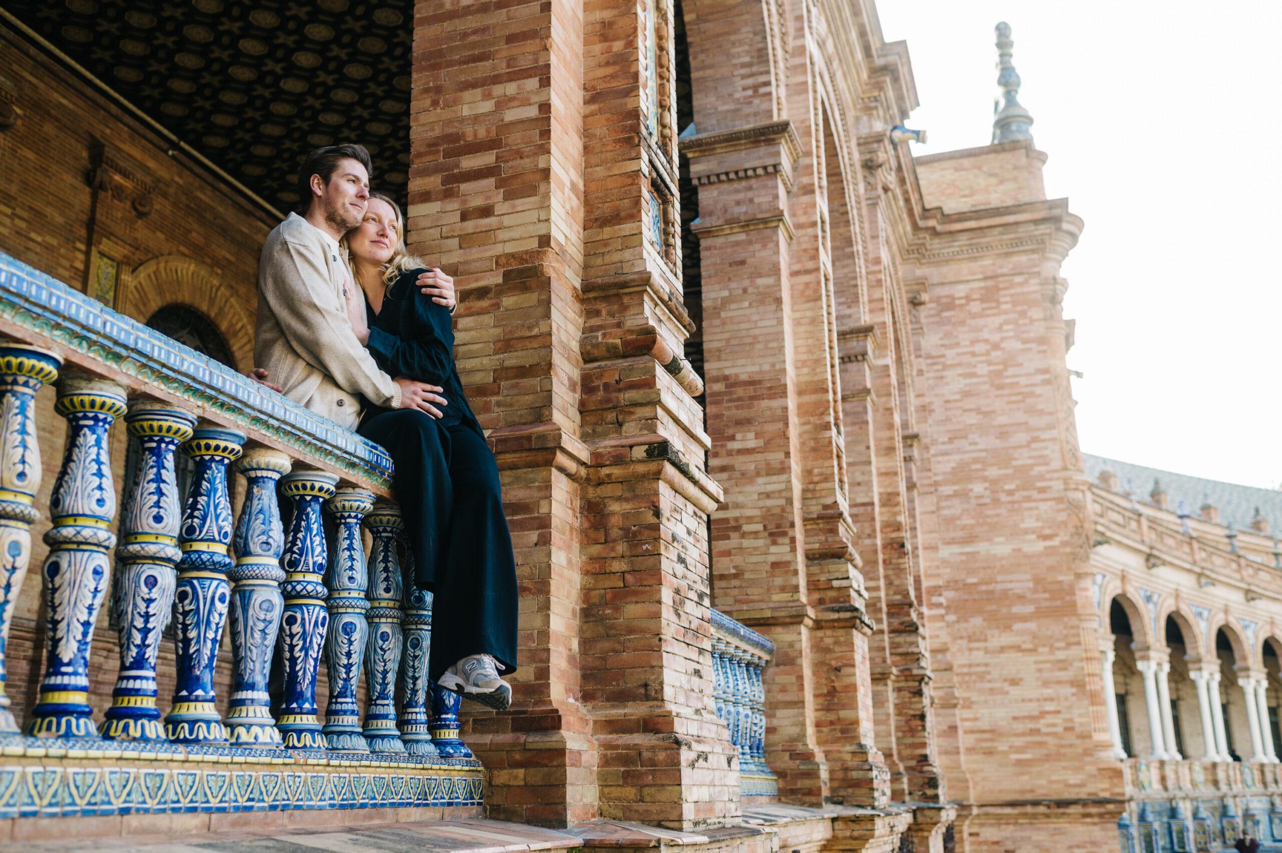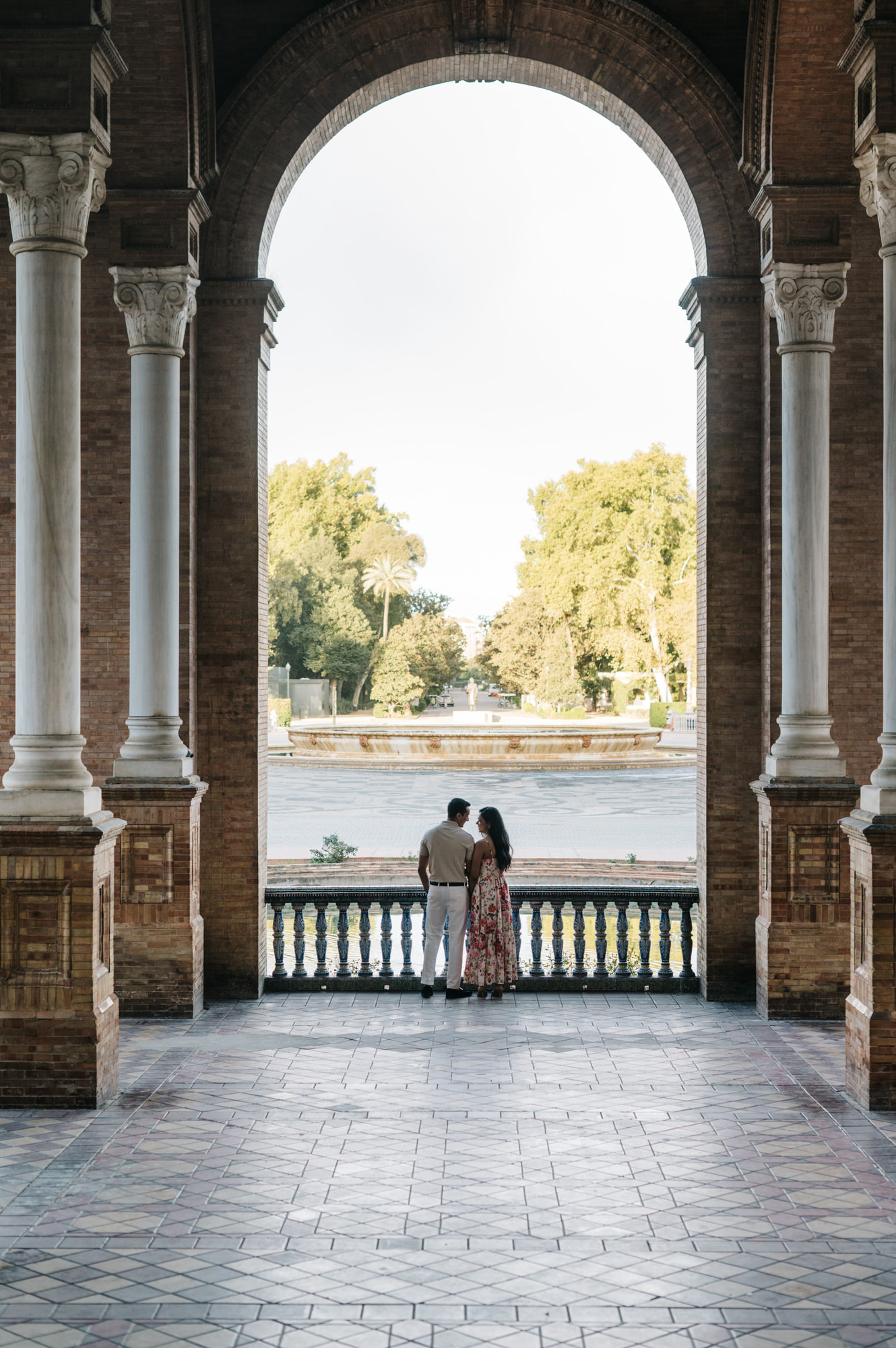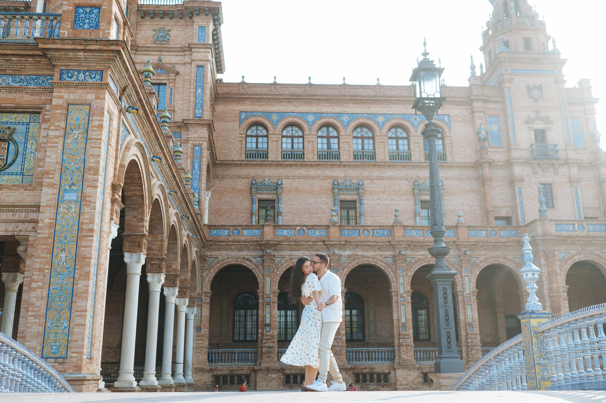 Plaza de España is also an ideal location for a surprise proposal photoshoot. The grandeur and romance of the square create the perfect setting for one of the most important moments of your life. As a professional Seville photographer, I discreetly capture the proposal and then continue with a romantic couple photoshoot around the plaza.