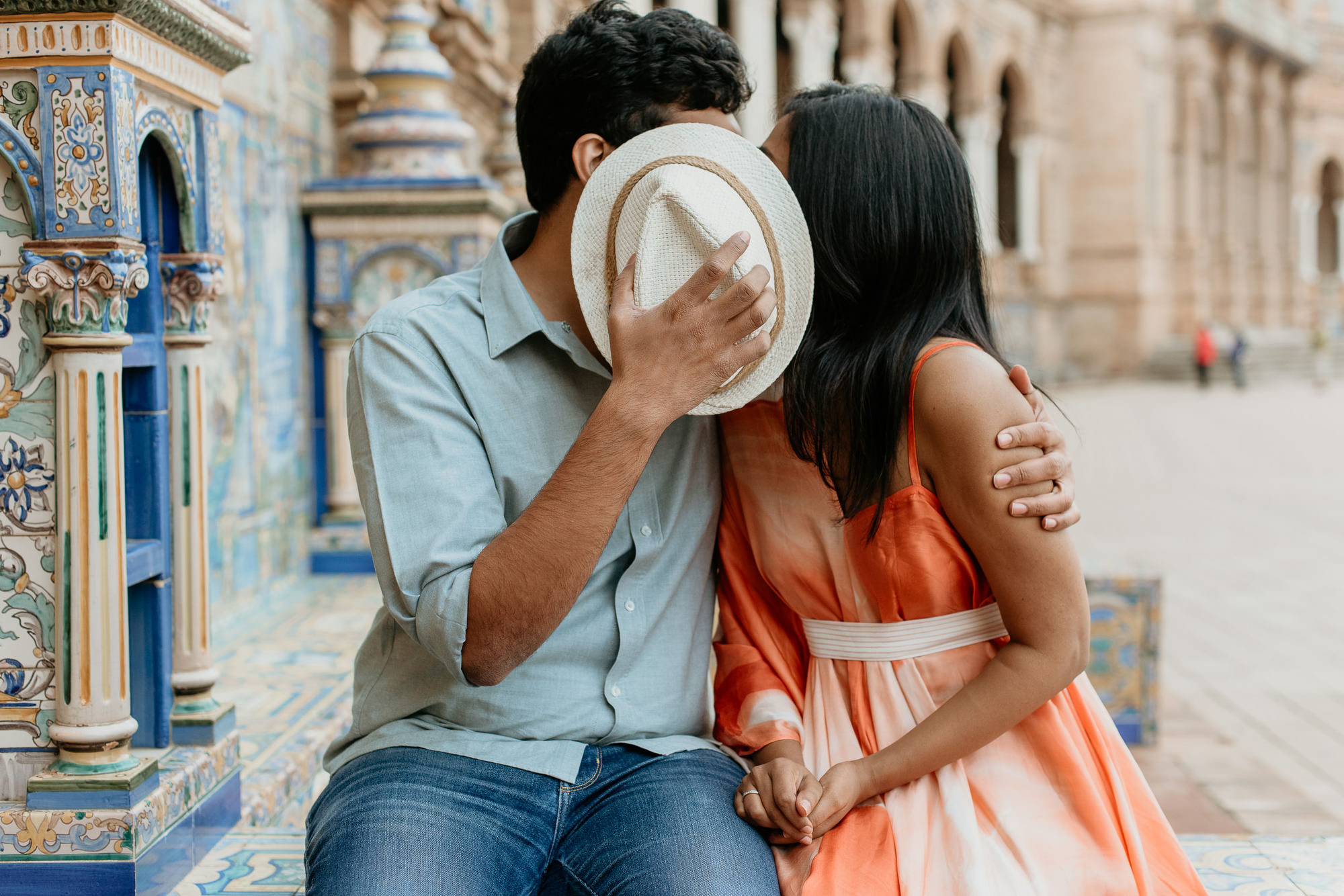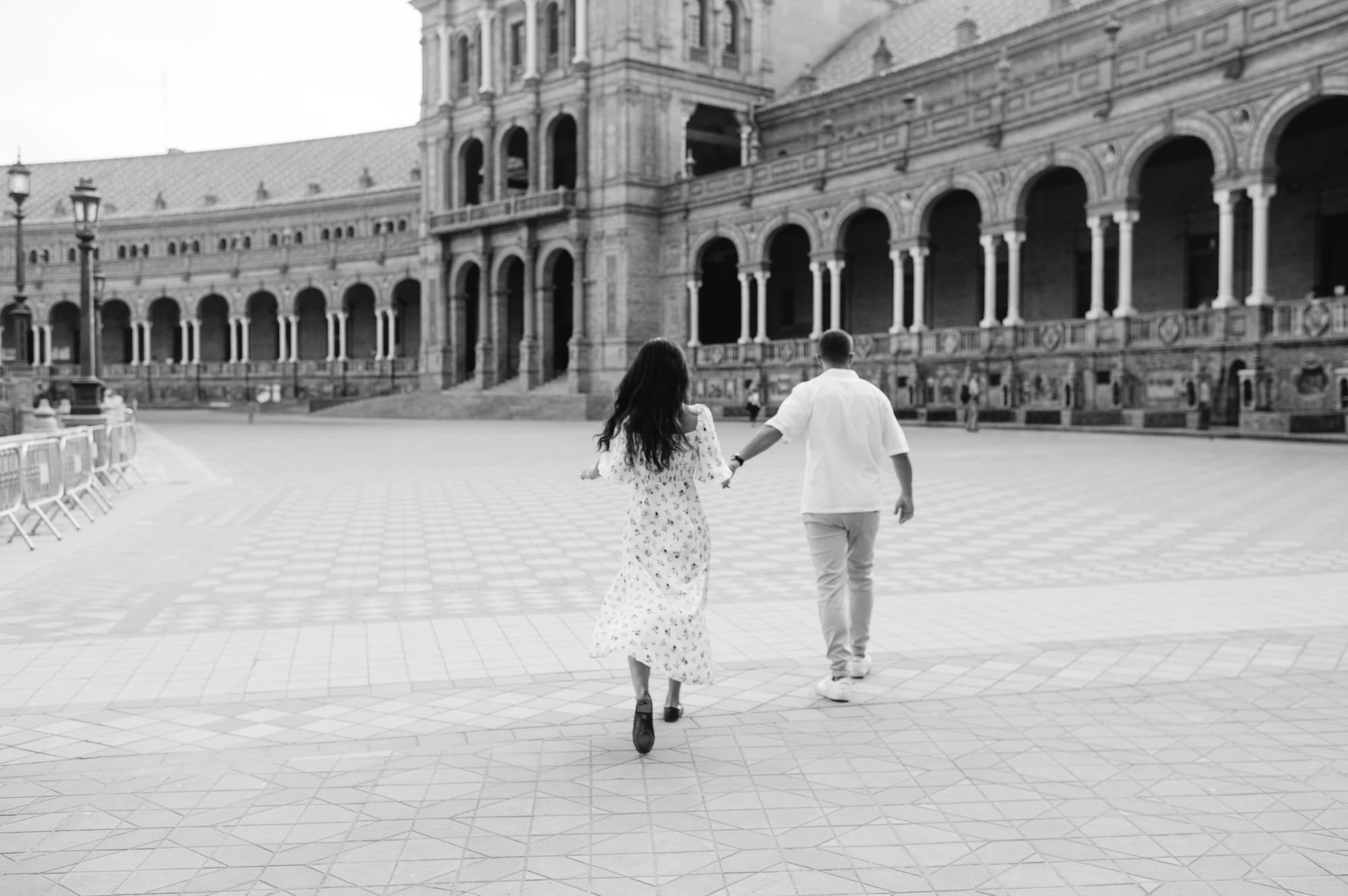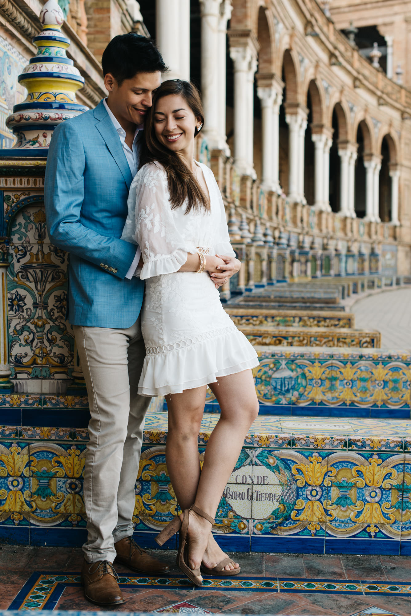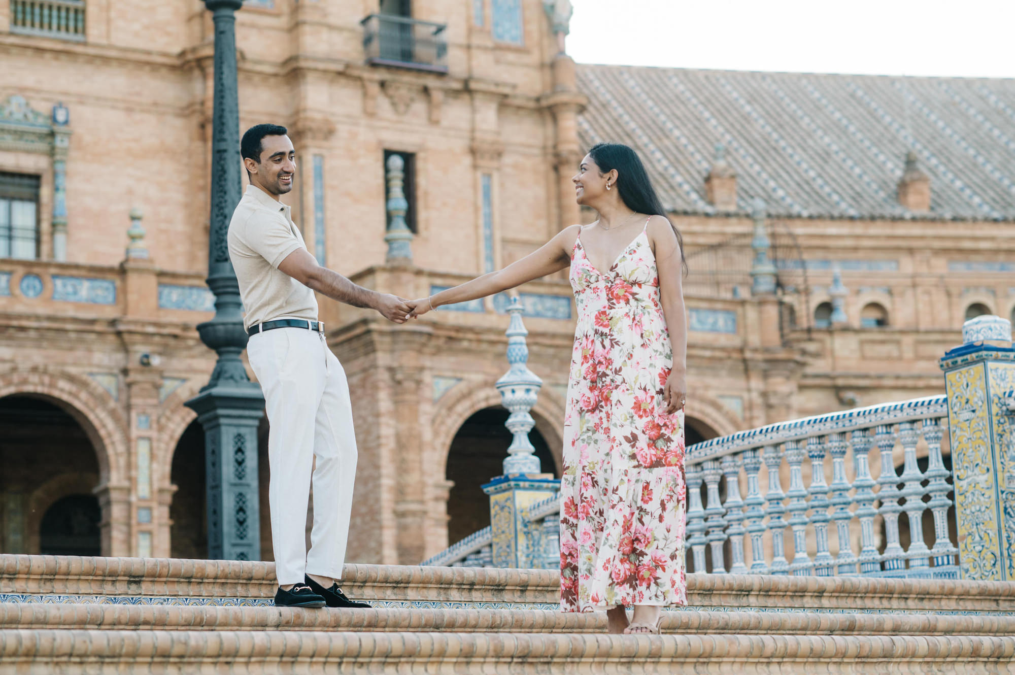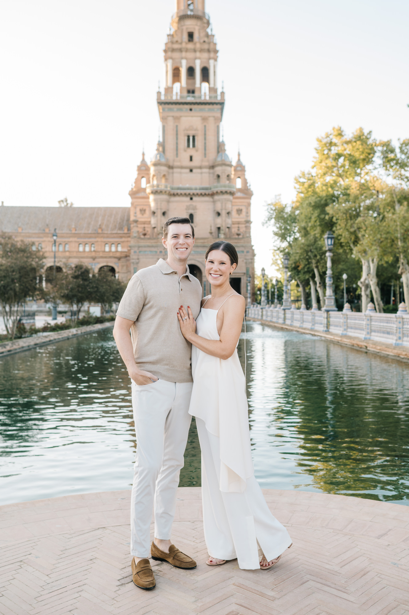Plaza de España is also an ideal location for a surprise proposal photoshoot. The grandeur and romance of the square create the perfect setting for one of the most important moments of your life. As a professional Seville photographer, I discreetly capture the proposal and then continue with a romantic couple photoshoot around the plaza.