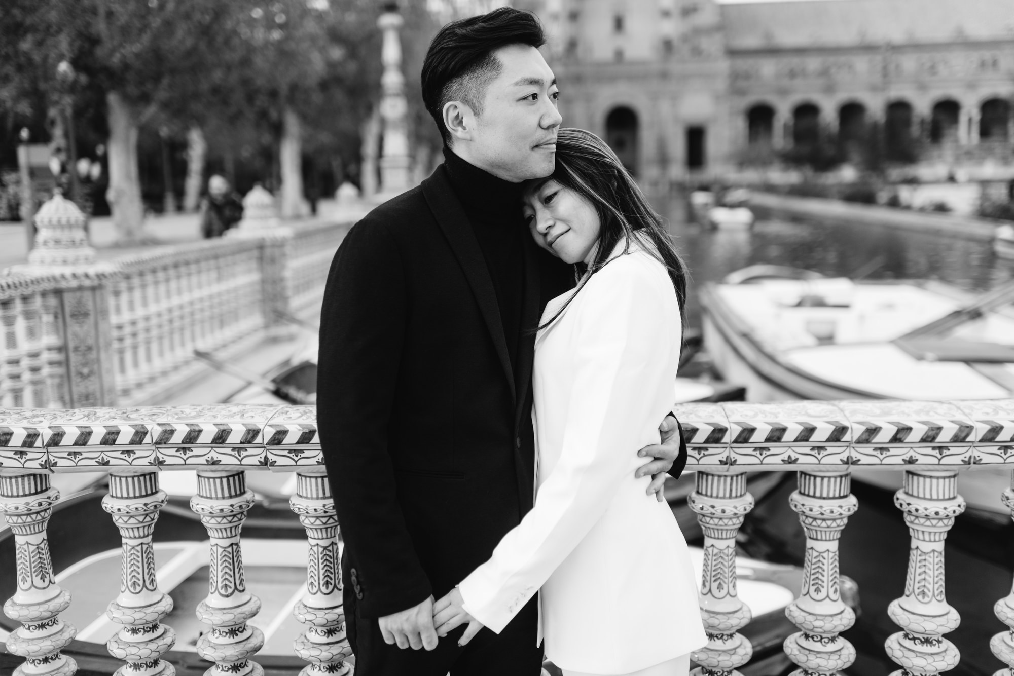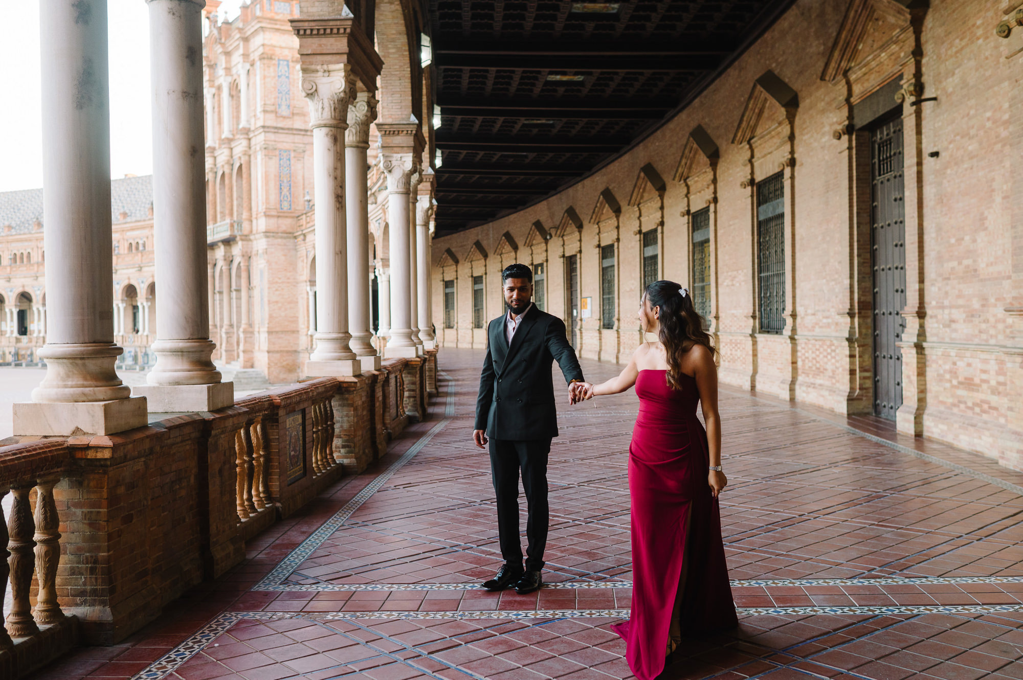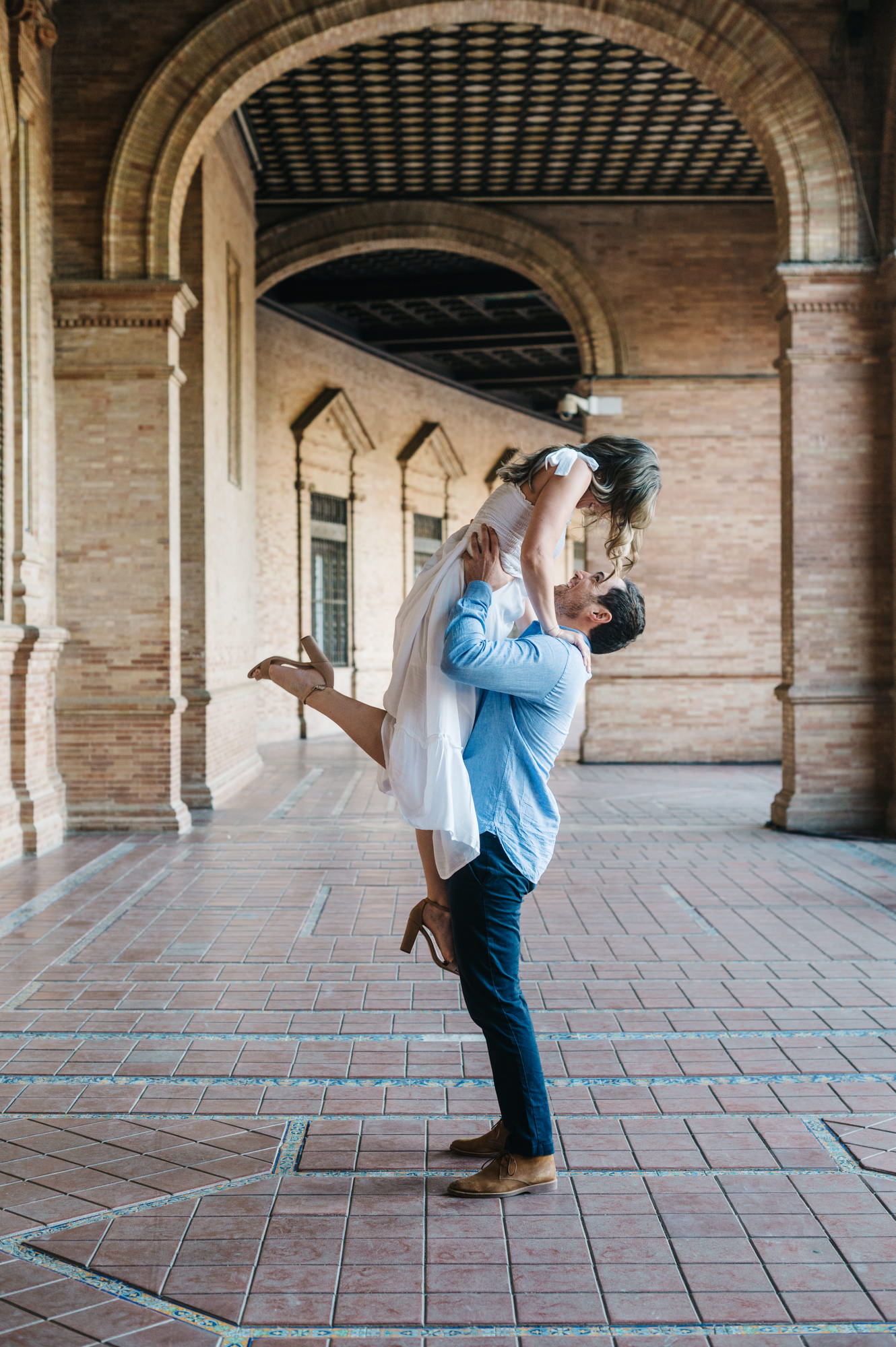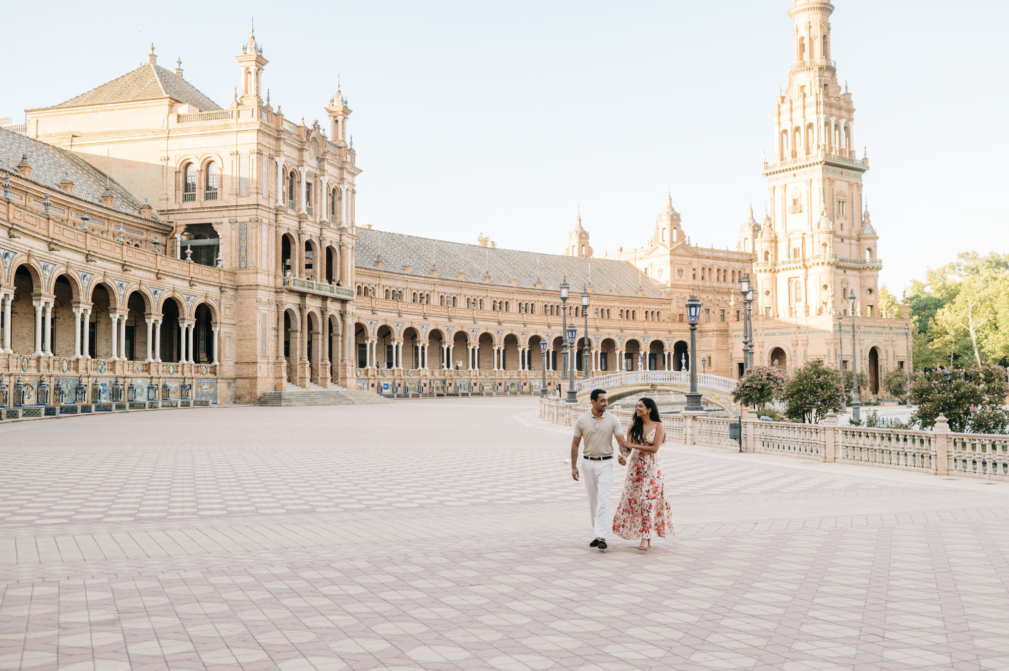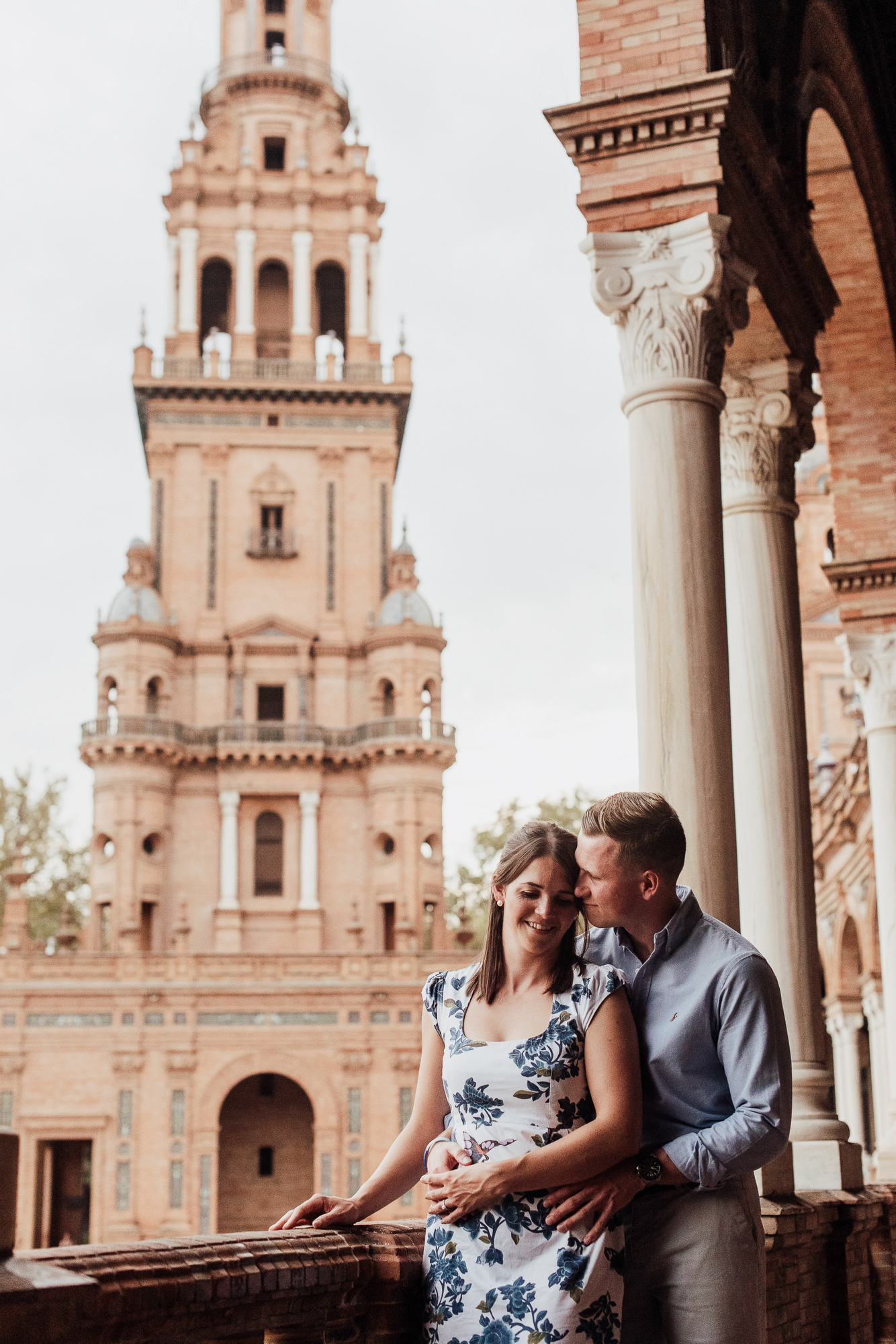 Plaza de España is also an ideal location for a surprise proposal photoshoot. The grandeur and romance of the square create the perfect setting for one of the most important moments of your life. As a professional Seville photographer, I discreetly capture the proposal and then continue with a romantic couple photoshoot around the plaza.