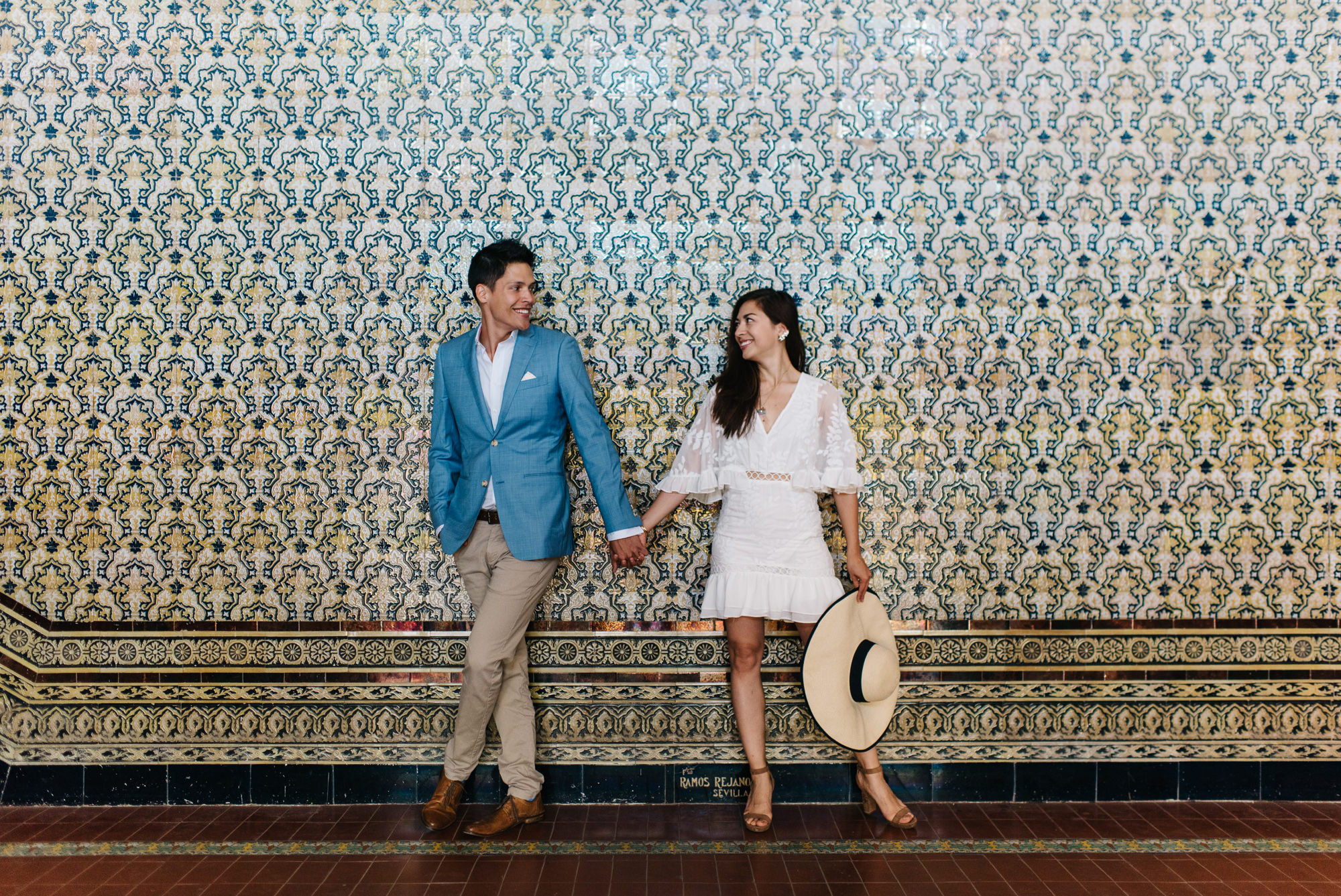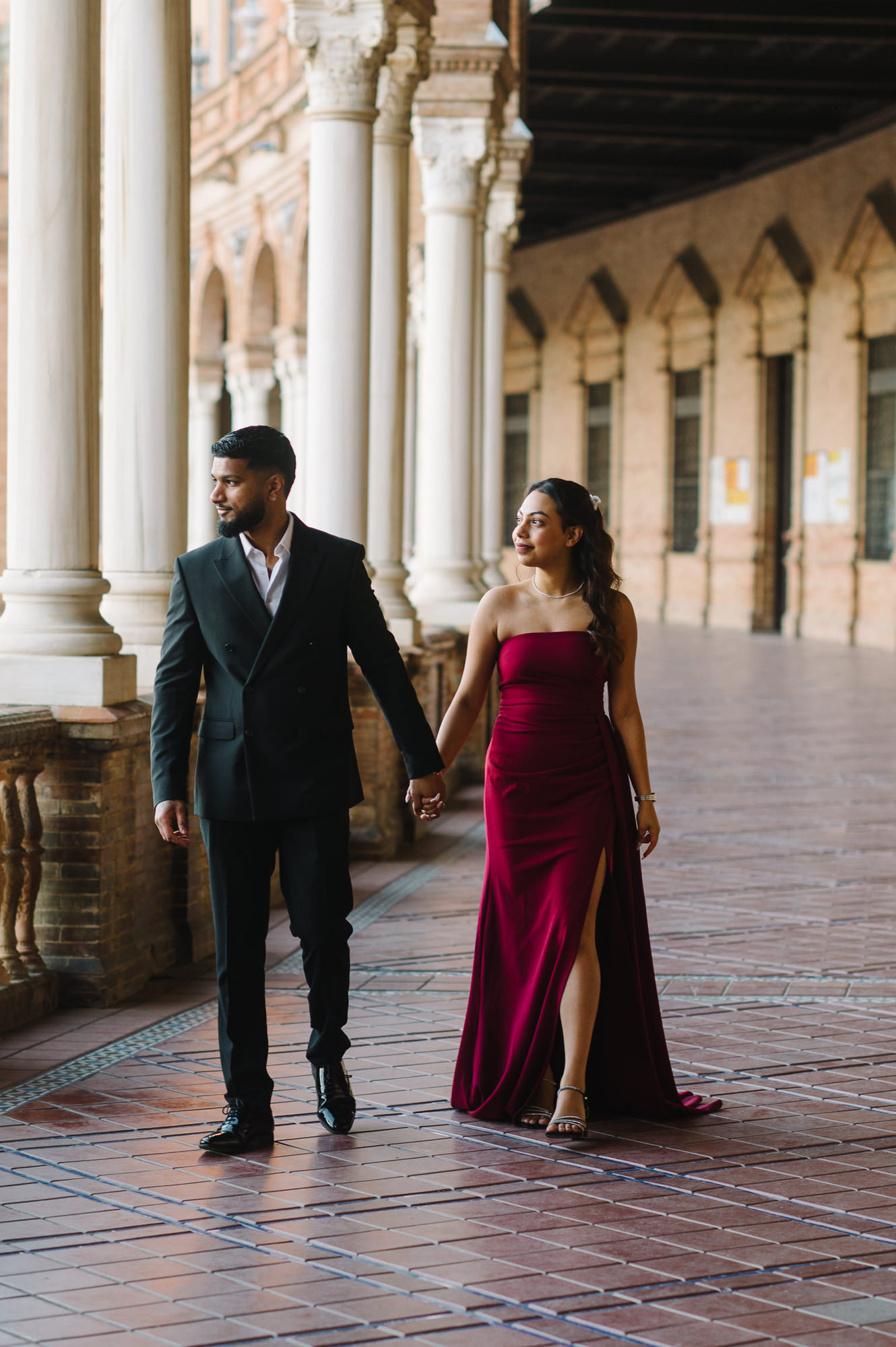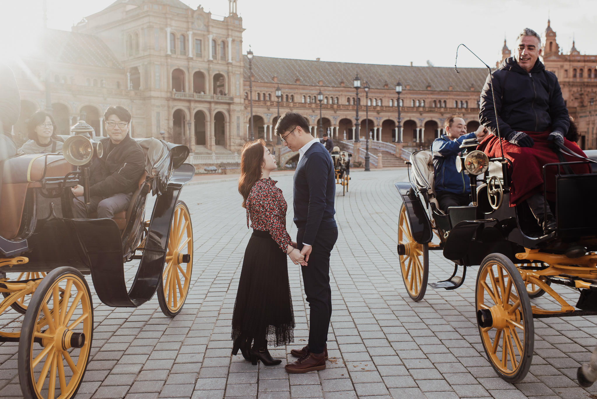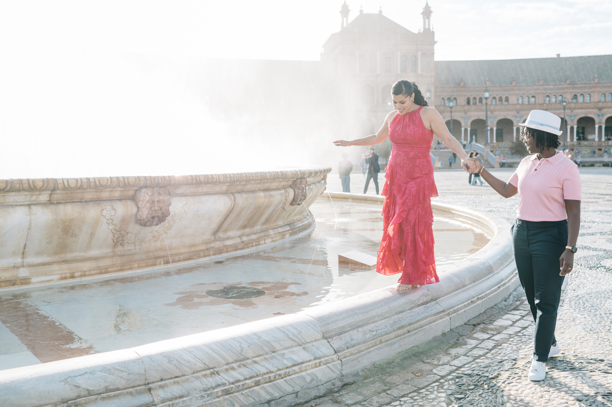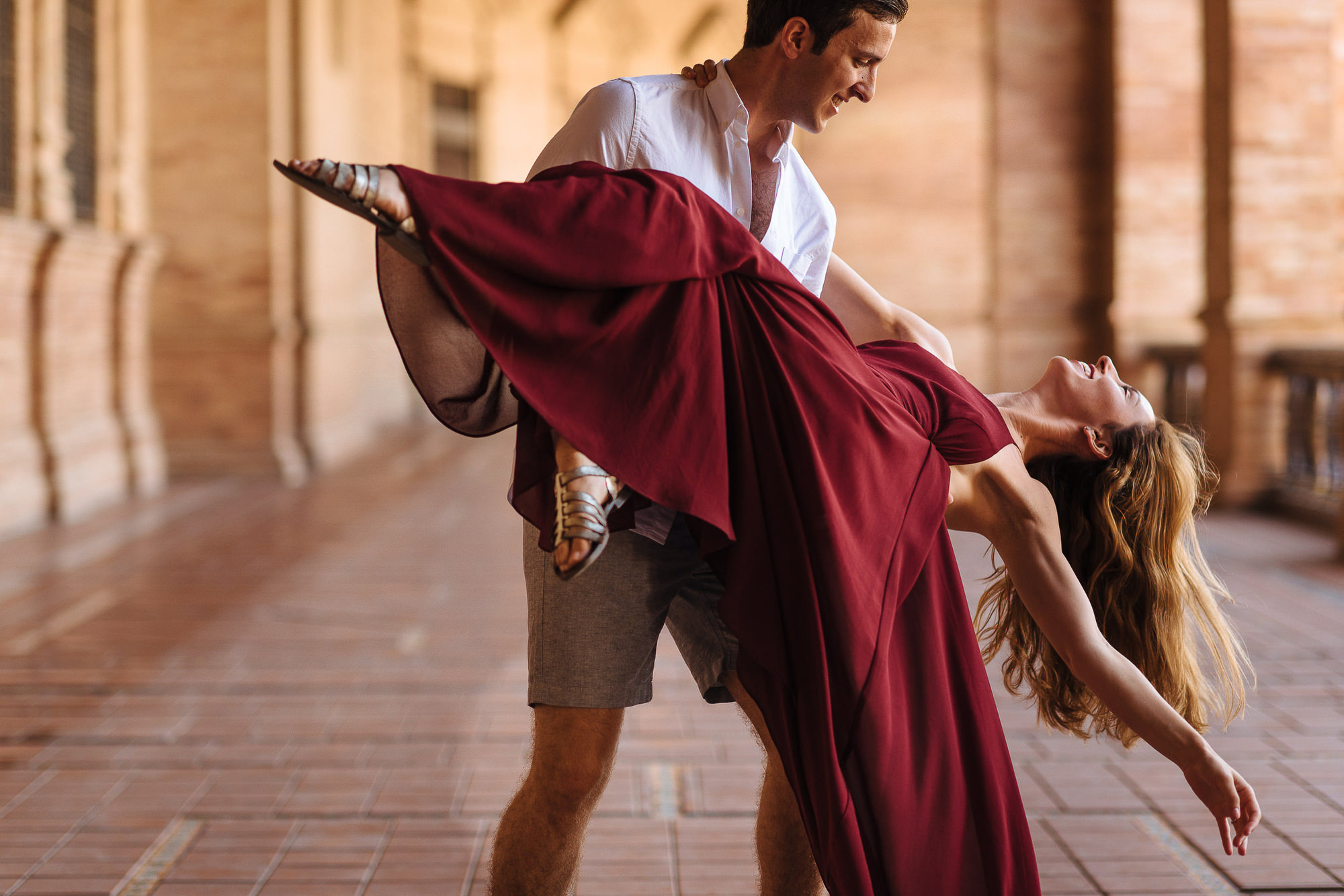 Plaza de España is also an ideal location for a surprise proposal photoshoot. The grandeur and romance of the square create the perfect setting for one of the most important moments of your life. As a professional Seville photographer, I discreetly capture the proposal and then continue with a romantic couple photoshoot around the plaza.