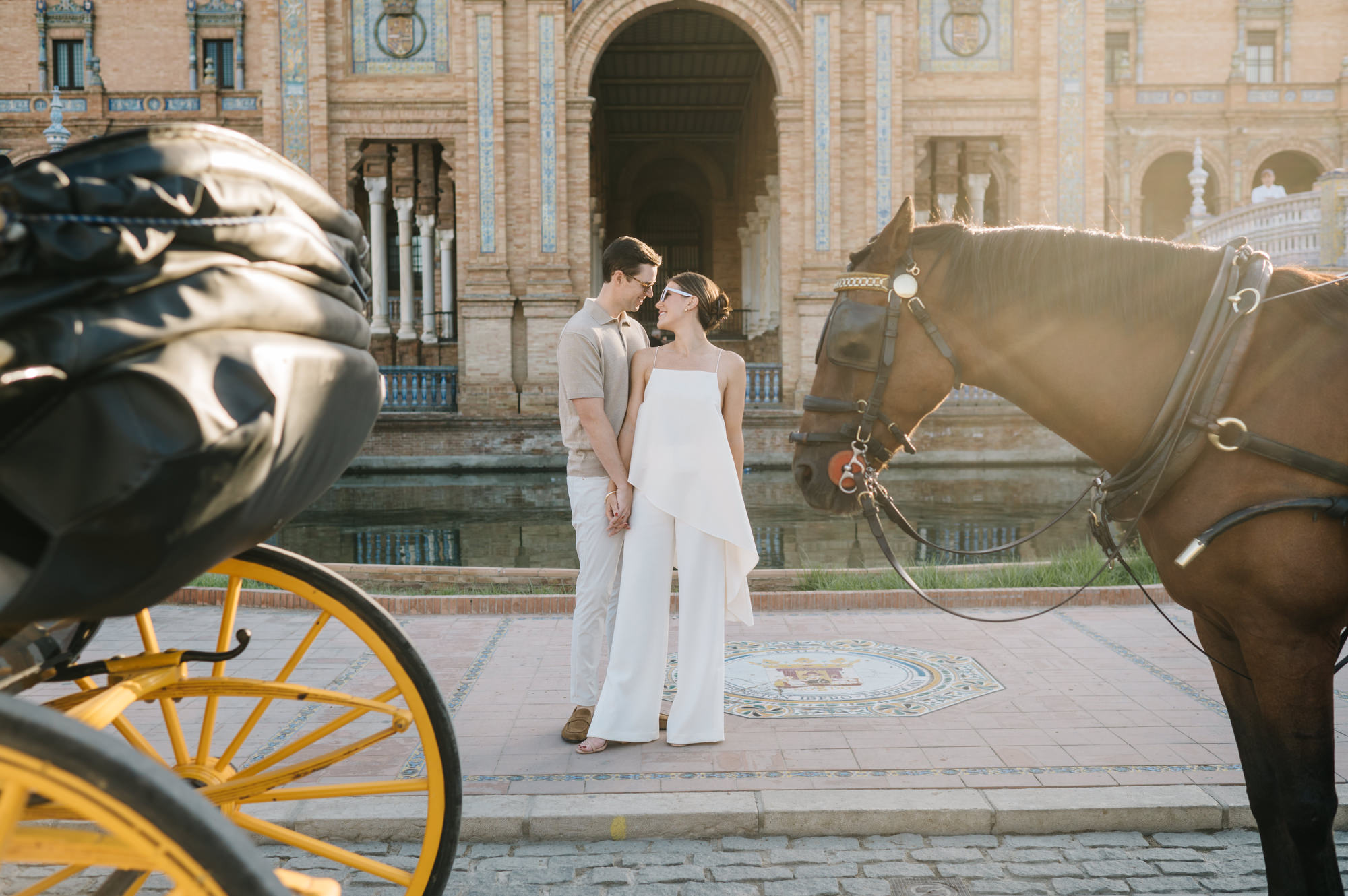 Whether you are celebrating an engagement, honeymoon, anniversary, or simply visiting Seville, a photoshoot at Plaza de España is an unforgettable experience. With its extraordinary architecture, beautiful reflections in the water, and vibrant Andalusian details, this location perfectly captures the spirit and elegance of Seville.