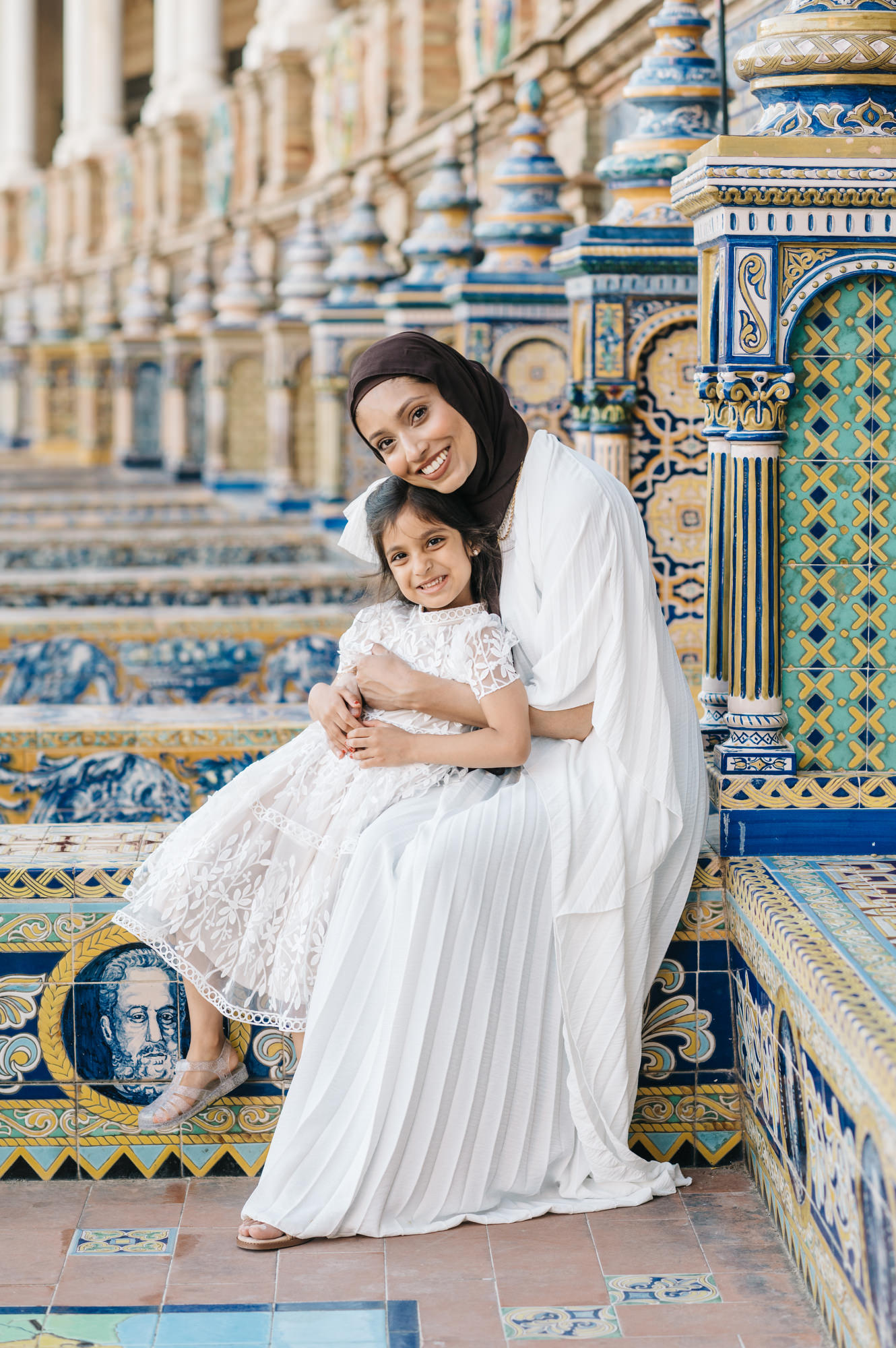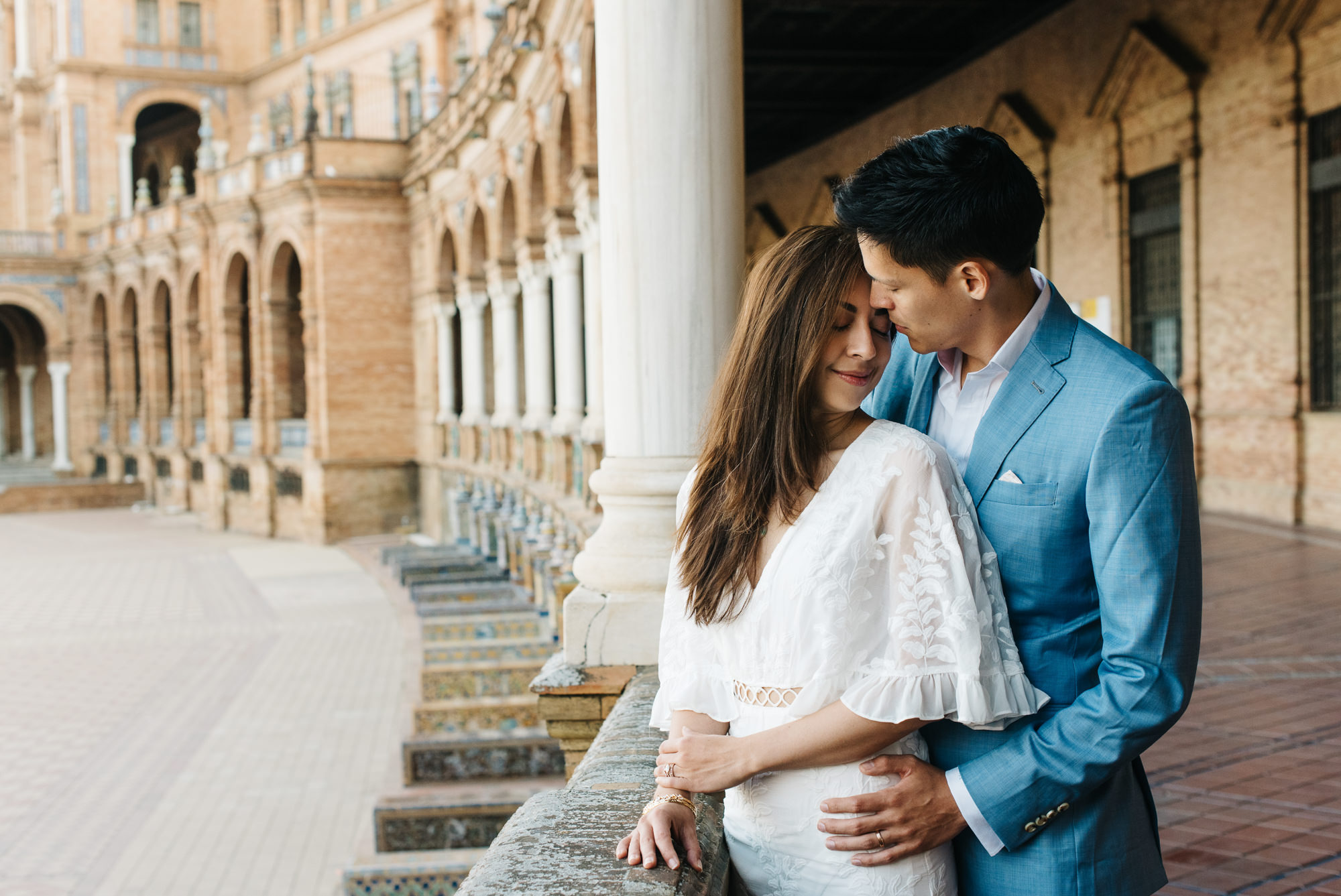 After exploring the historic streets of Santa Cruz, the session continues at the spectacular Plaza de España. This impressive square is one of the most recognizable landmarks in the city and offers a completely different style of photography.