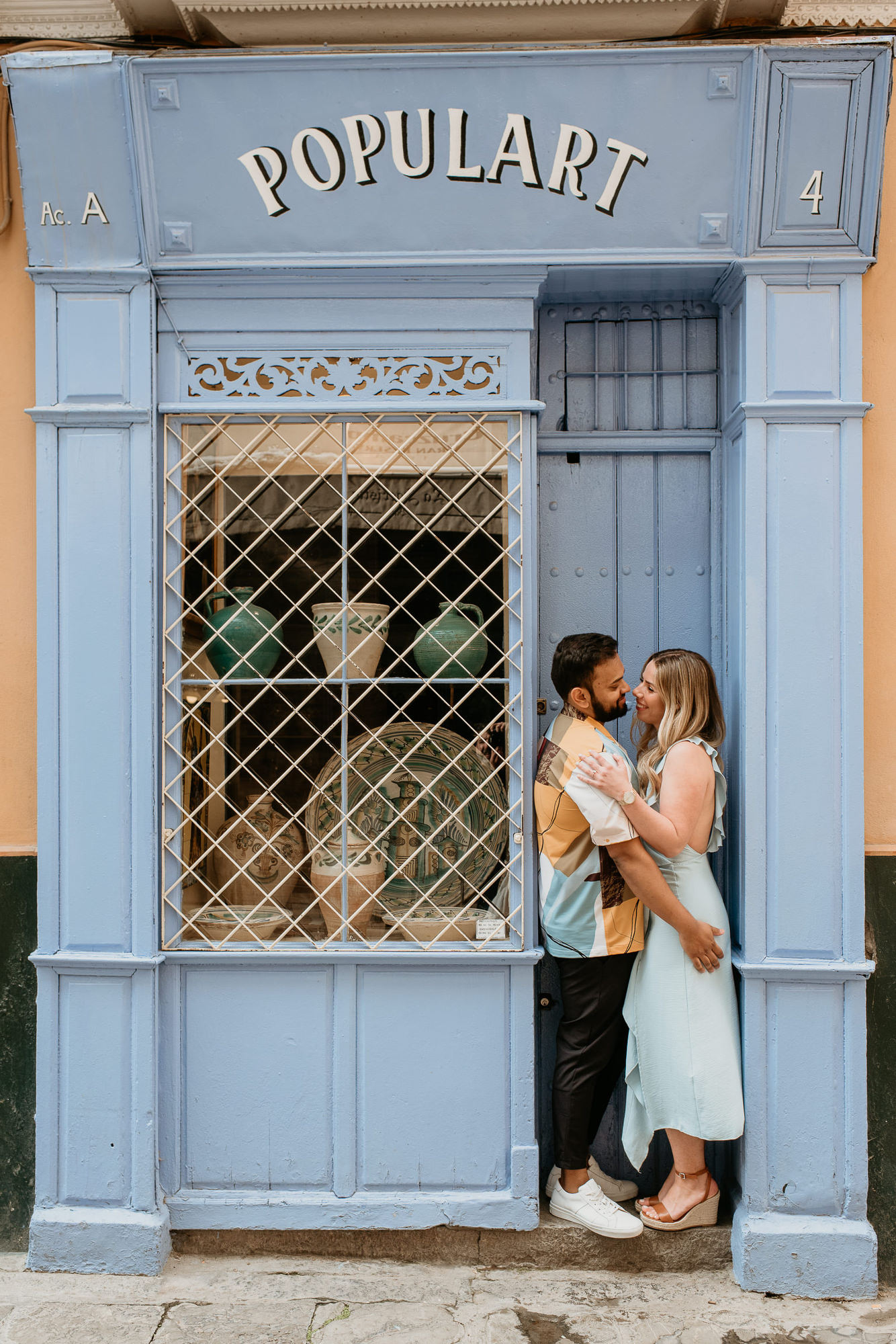 During the photoshoot we walk through some of the most picturesque streets, discovering quiet corners and beautiful backdrops along the way. The soft light reflecting off the white walls creates a warm and flattering look that works beautifully for portraits and couple photography.