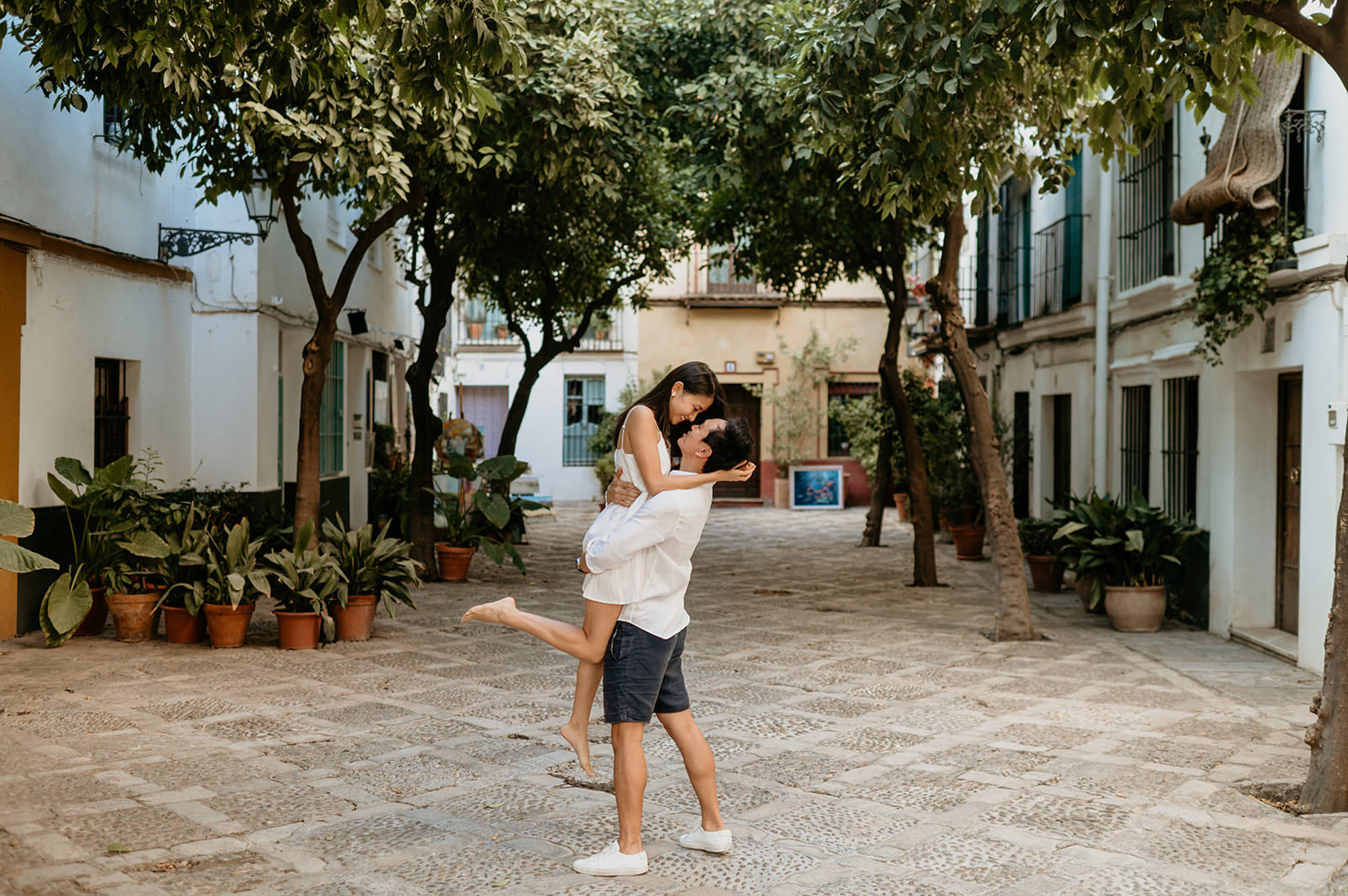 Santa Cruz is ideal for couples, engagement sessions, surprise proposals, or travelers who want authentic photos that truly capture the atmosphere of Seville.