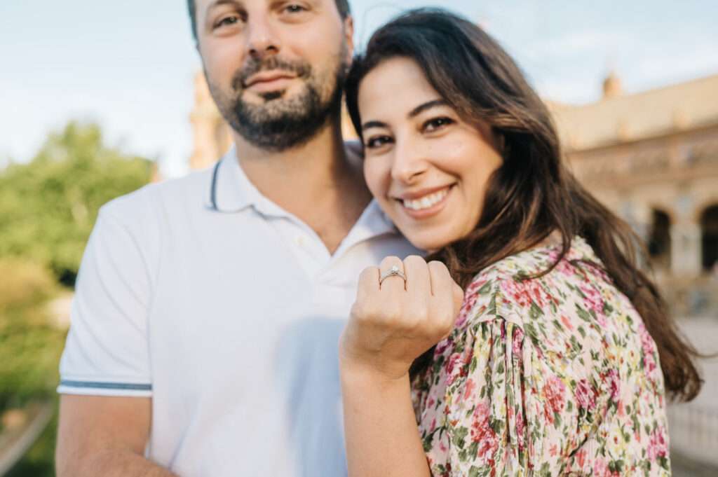 A professional Seville proposal photographer can discreetly document the entire moment without interrupting the surprise. From the moment he kneels down to the instant she says yes, every expression and emotion is preserved naturally.