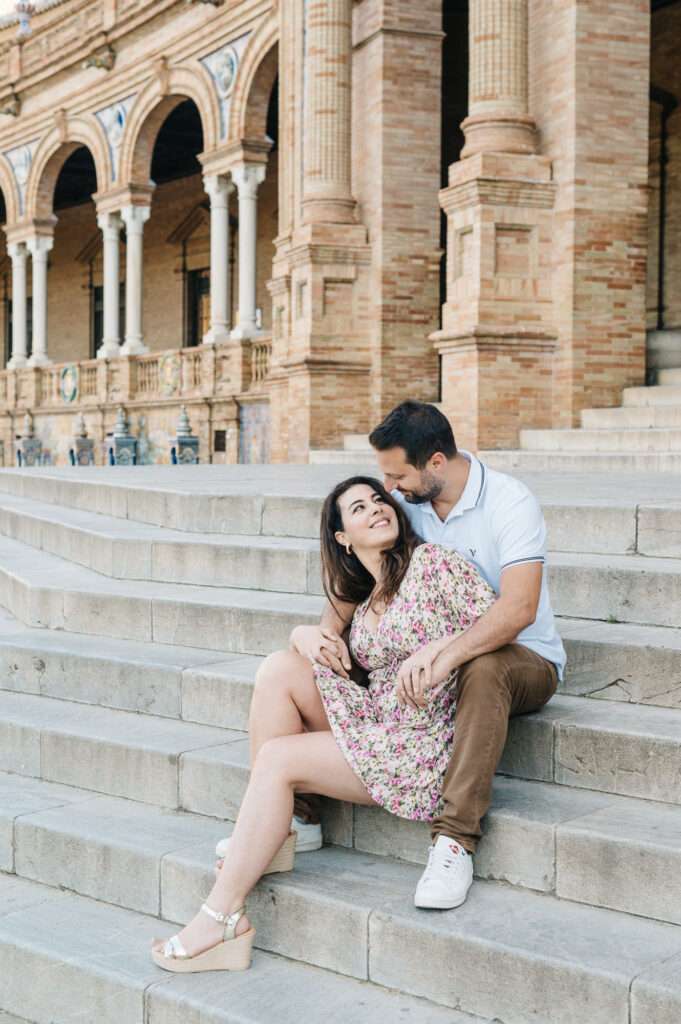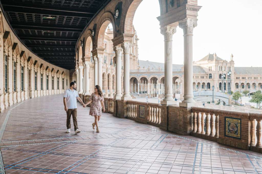 Many couples choose this location because it feels both grand and intimate at the same time. Early morning light softly illuminates the square, highlighting the warm colors of the historic building that was constructed for the Ibero-American Exposition of 1929. This creates a cinematic atmosphere that makes the proposal even more magical.